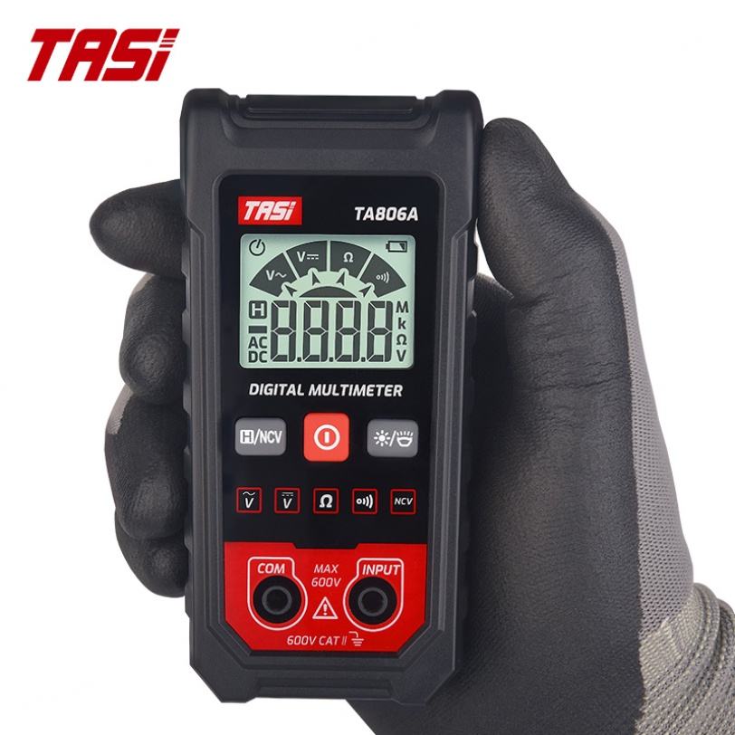 Multímetro Digital Compacto con Autoajuste de Rango Tasi TA806A - Retención de Datos Automática, Protección Contra Sobrecarga, Uso Doméstico e Industrial