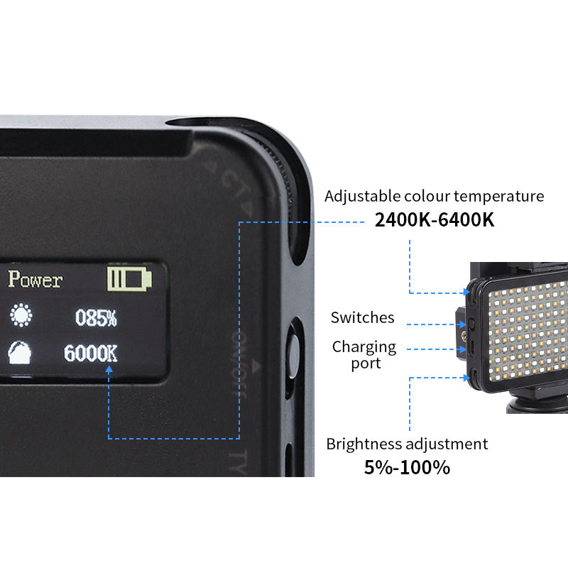 Luz de relleno de tatuaje Luz de selfie recargable Negro con adaptador de clip para luz de relleno Tatt
