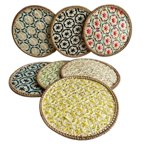 Posavasos decorativos para té y café, venta al por mayor, posavasos de té de ratán de forma redondeada para alfombrillas y almohadillas para el hogar