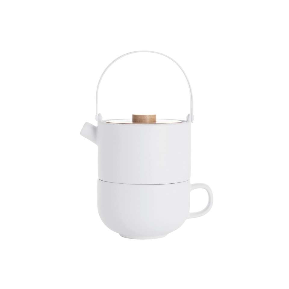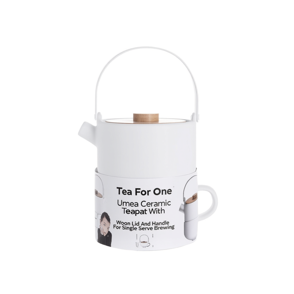 Tetera de cerámica Tea For One Umea con tapa y asa de madera para preparar una sola taza