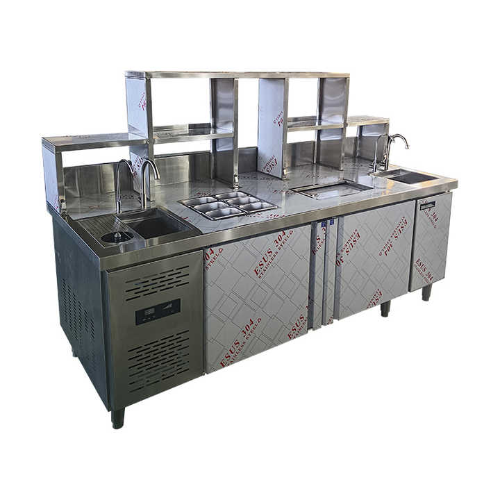Mostrador para Servir Té, Barra de Exhibición de Té con Leche, Diseño de Mostrador con Mesa de Trabajo