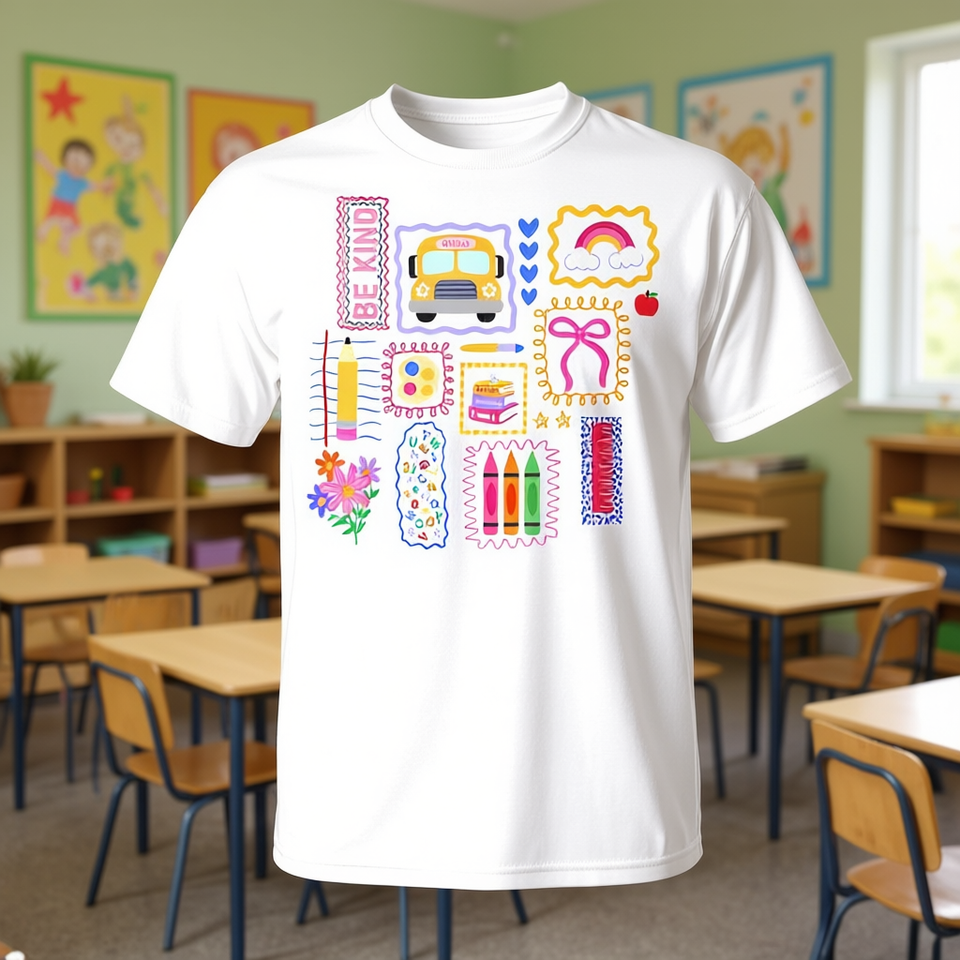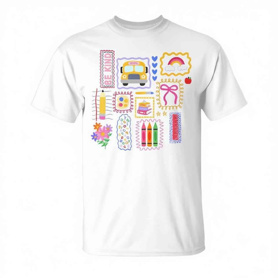 Camiseta colorida con dibujos para profesores, regreso a la escuela
