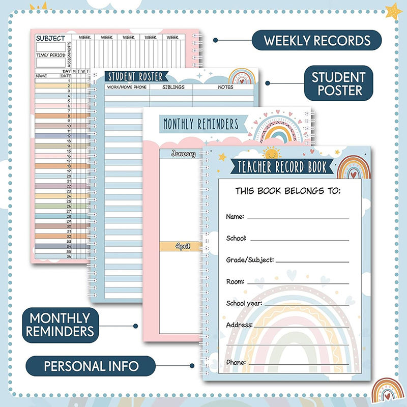 Cuaderno de Registro de Calificaciones para Profesores, Cuaderno de Registro con Encuadernación Giratoria, Suministros de Oficina, Suministros para Registro de Asistencia en el Aula, Cuadernos de Registro