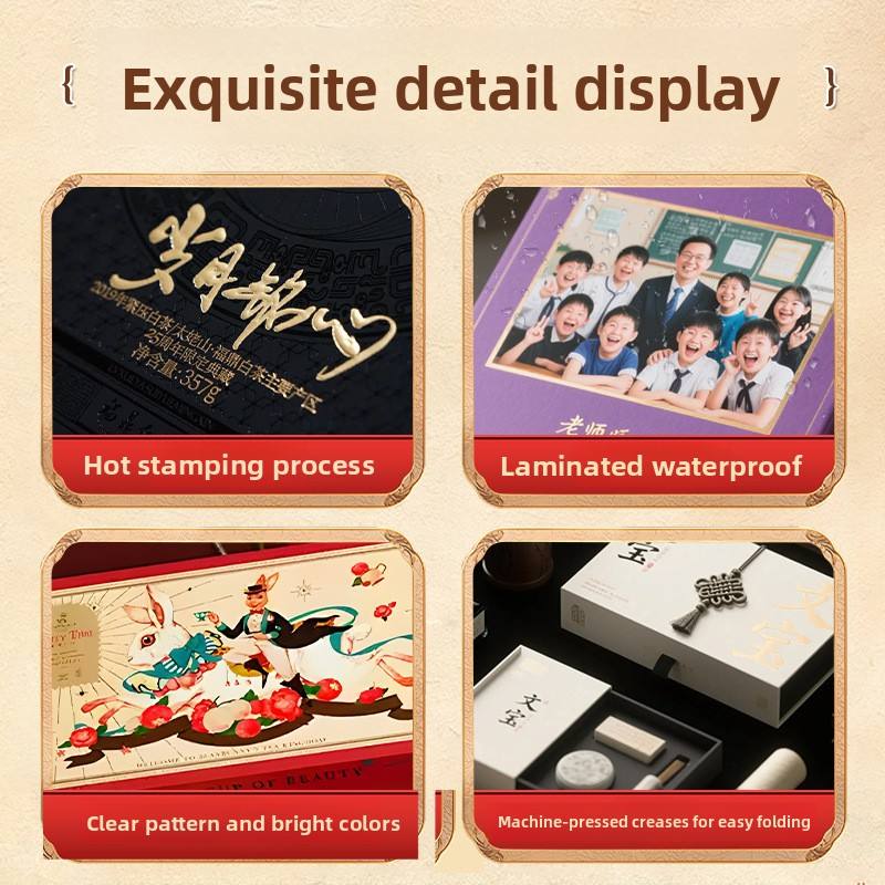 Manejo de la impresión:Texturizado, Laminación brillante, Bronceado, Hoja de plata, Impresión de huecograbado, Revestimiento UV, Barnizado, Estampado holográfico, Laminado, GLİTTER, Impresión flexográfica, Impresión ultravioleta, Membranae tectoria, Estampado en frío, Desaparición, Corte por láser, impresión offset, Relieve, Gofrado/Debossing, IMPRESIÓN DE PANTALLA DE SEDA, Lámina de oro, Estampado, Laminación mate, Troqueles