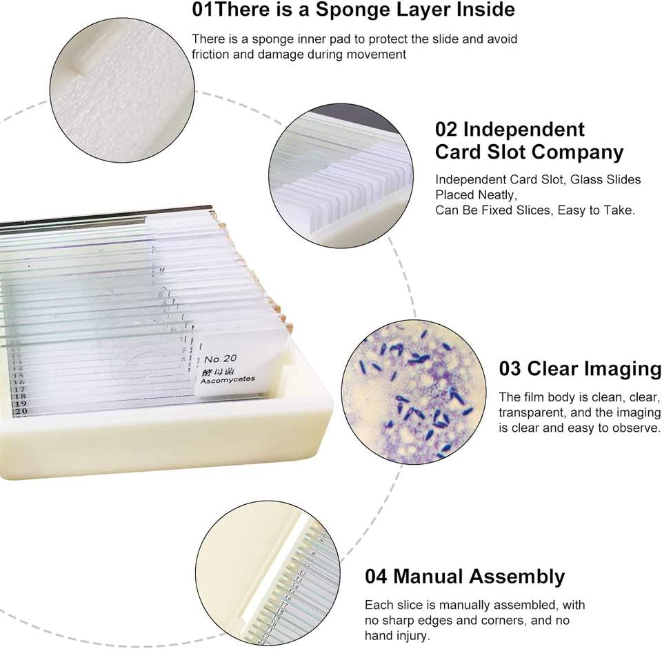 Recursos Didácticos, Equipo de Enseñanza, Microscopio Médico, Preparación de Secciones Histológicas de Portaobjetos Biológicos, 25 Piezas