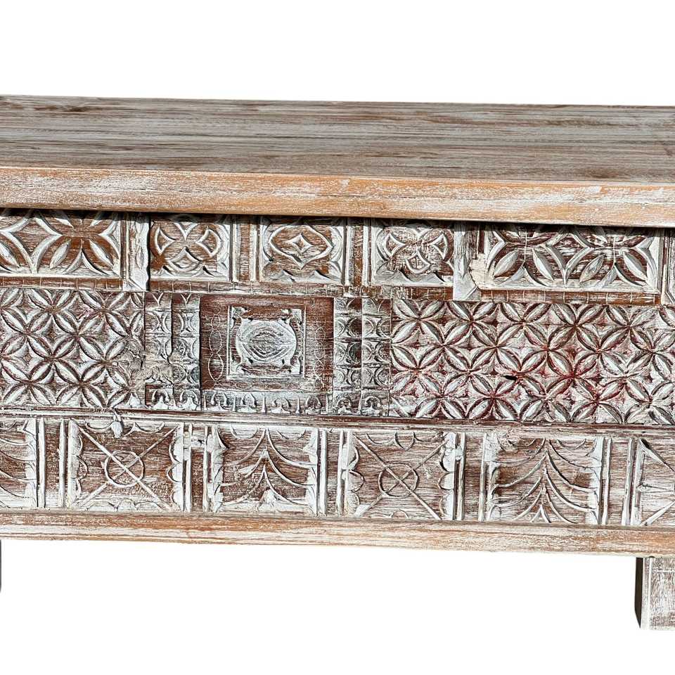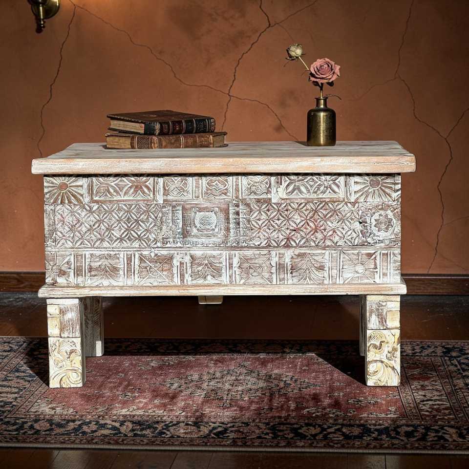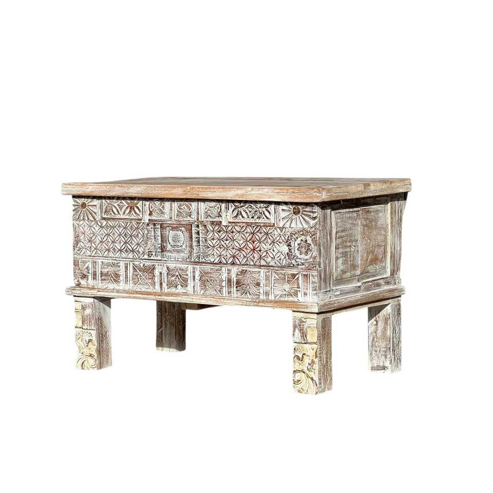 Caja de teca tallada estilo rústico para muebles de sala de estar