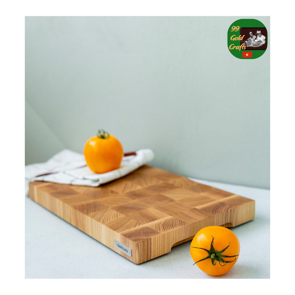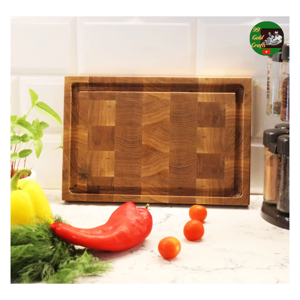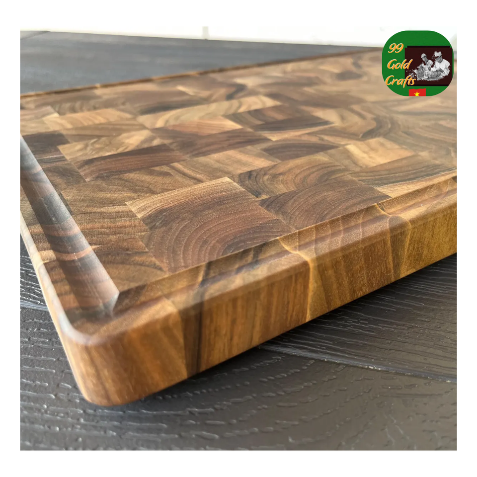 Tabla de cortar de teca, tabla de cortar de madera de teca duradera con mango para el hogar, restaurante, tabla de cortar de bloque de carnicero de arce