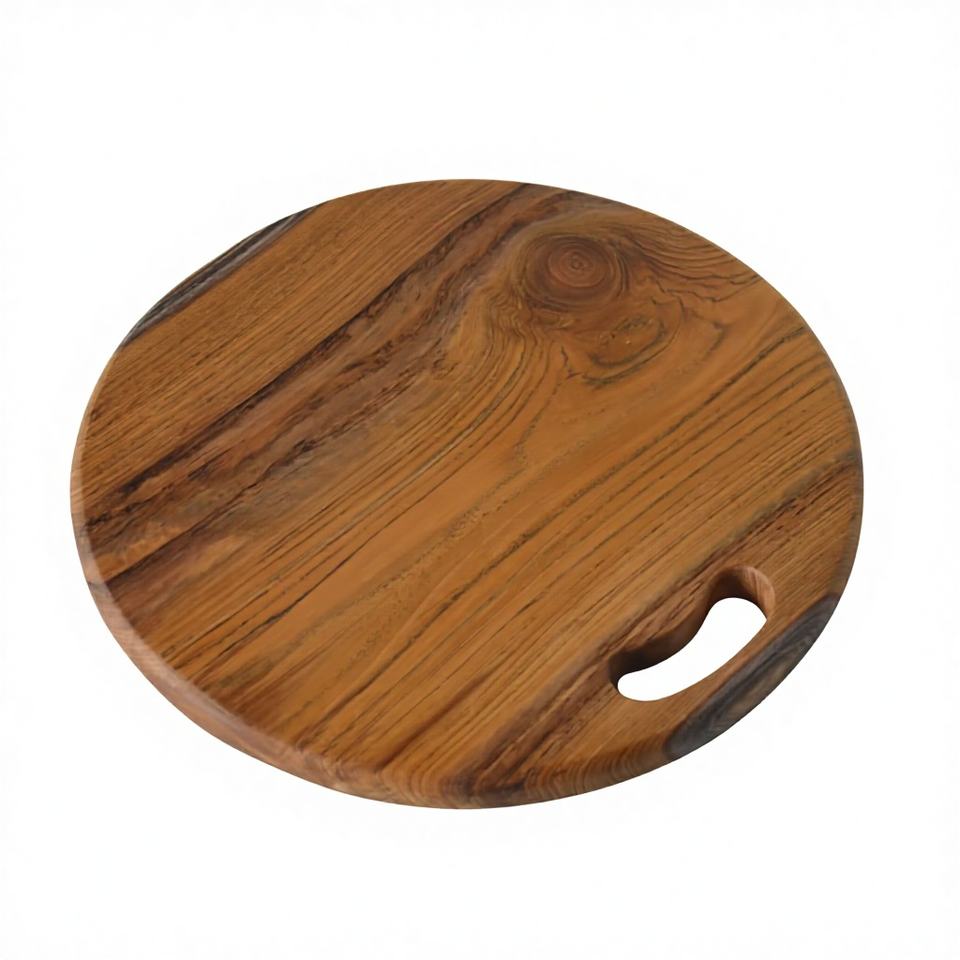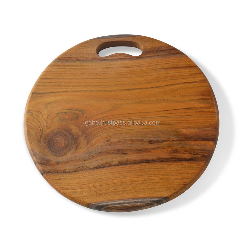 Tabla de cortar de teca redonda, madera maciza, hecha a mano, modelo HD70785