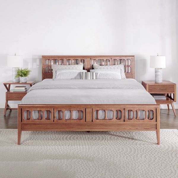 Estructura de cama de madera minimalista moderna, muebles duraderos de madera Suar de caoba de teca para dormitorio, Color Natural para Hotel Villa 040213