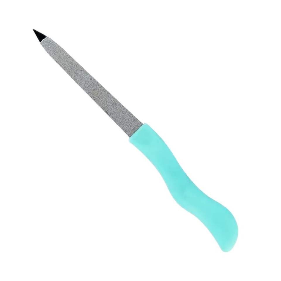 Lima de uñas curva color verde azulado con forma de plátano para preparar la zona de las cutículas, diseño ergonómico para un agarre fácil, de metal y acero de zafiro.