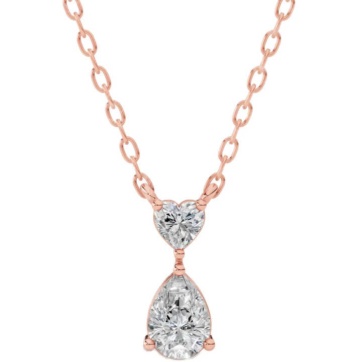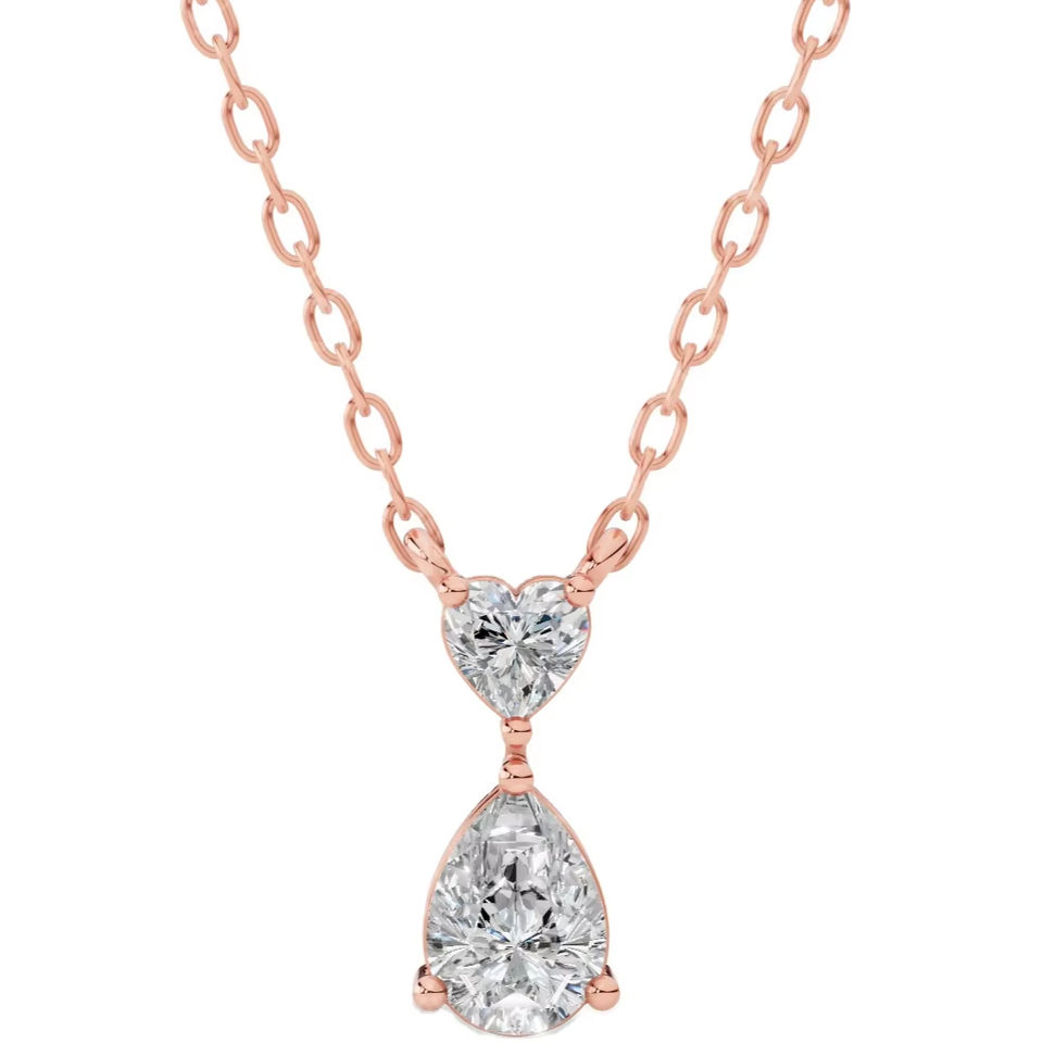 Collar de compromiso y boda con doble dije de diamante cultivado en laboratorio en forma de lágrima, en oro de 14K, con colgante de lujo en forma de corazón y pera.