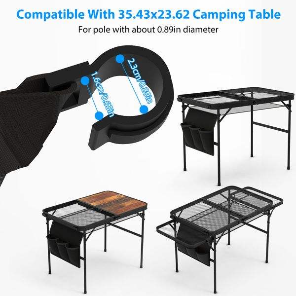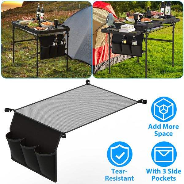 Red de Almacenamiento Colgante Resistente a Desgarros para Mesa de Camping, 35.43x23.62, Bolsa de Red para Mesa Plegable con 3 Bolsillos Laterales y 4 Clips de Esquina