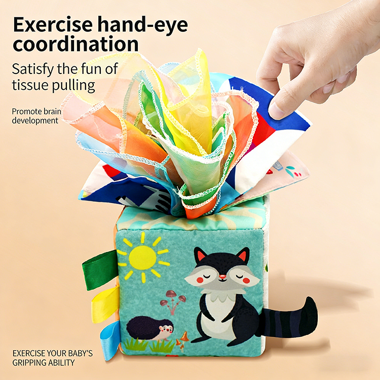 Product Name:Tear-Resistant Washable Plush Tissue Box Toy with Colorful Scarves