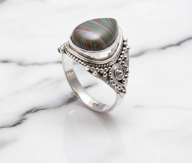 Keyword:925 Sliver Malachite Ring Made With Pure Gold Plated And Malachite