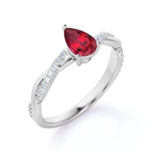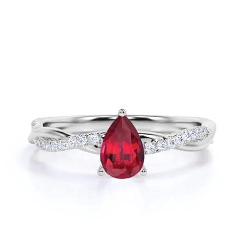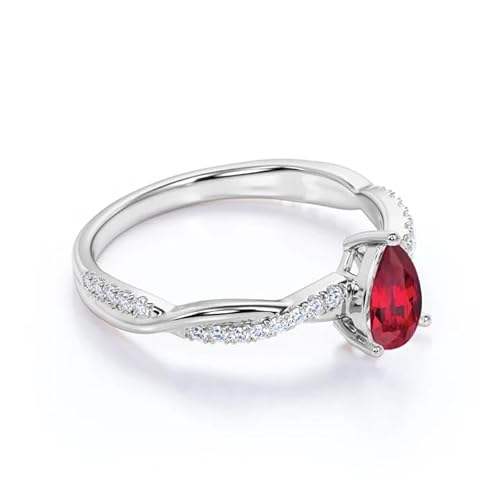 Anillo de Compromiso y Boda con Rubí en Forma de Lágrima, Plata de Ley 925, Diseño Clásico Trenzado, Chapado en Oro de 14K