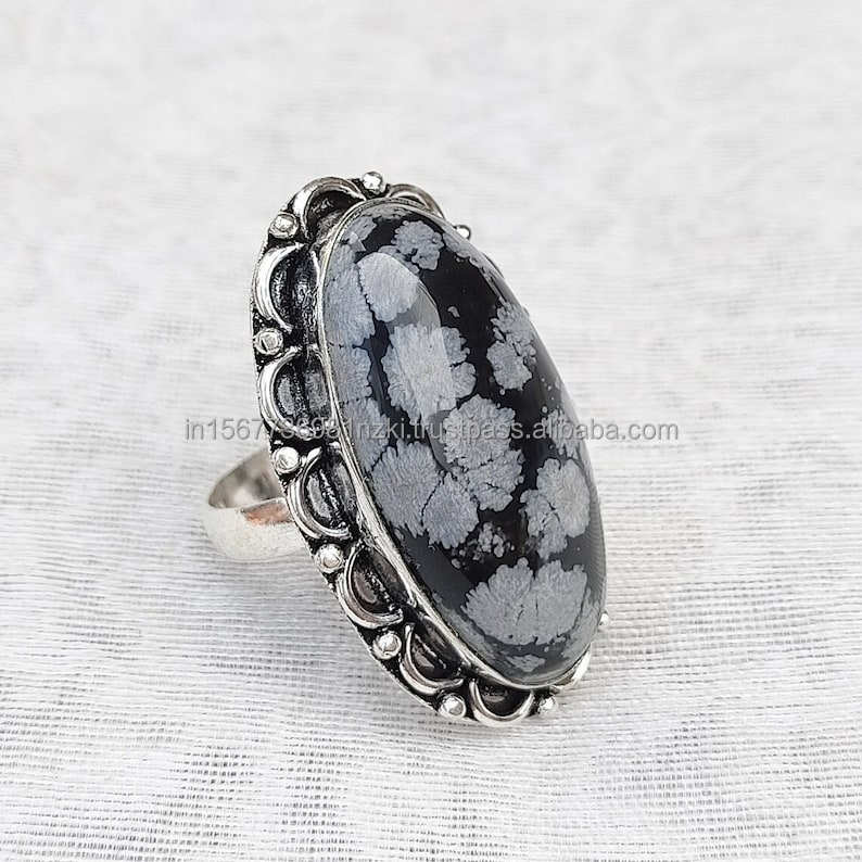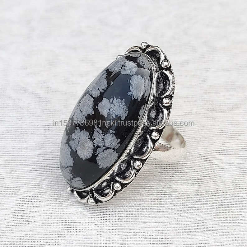 Product name:925 Sterling Silver Ring Snowflake Obsidian