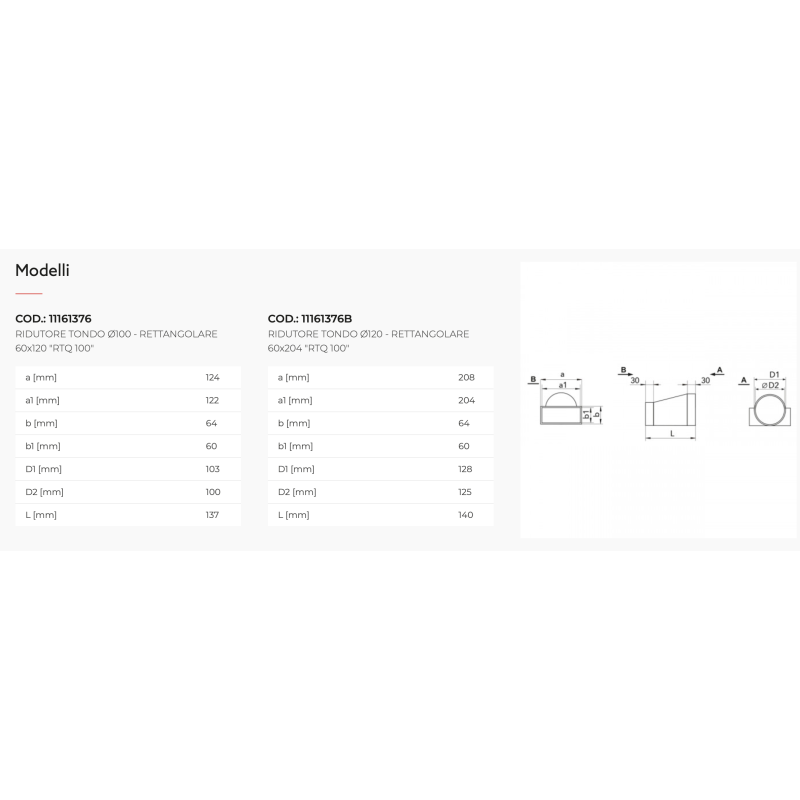 Reductor Redondo-Rectangular de PVC de Tecnosystemi con Orificio para Sistemas de Ventilación y Succión HVAC