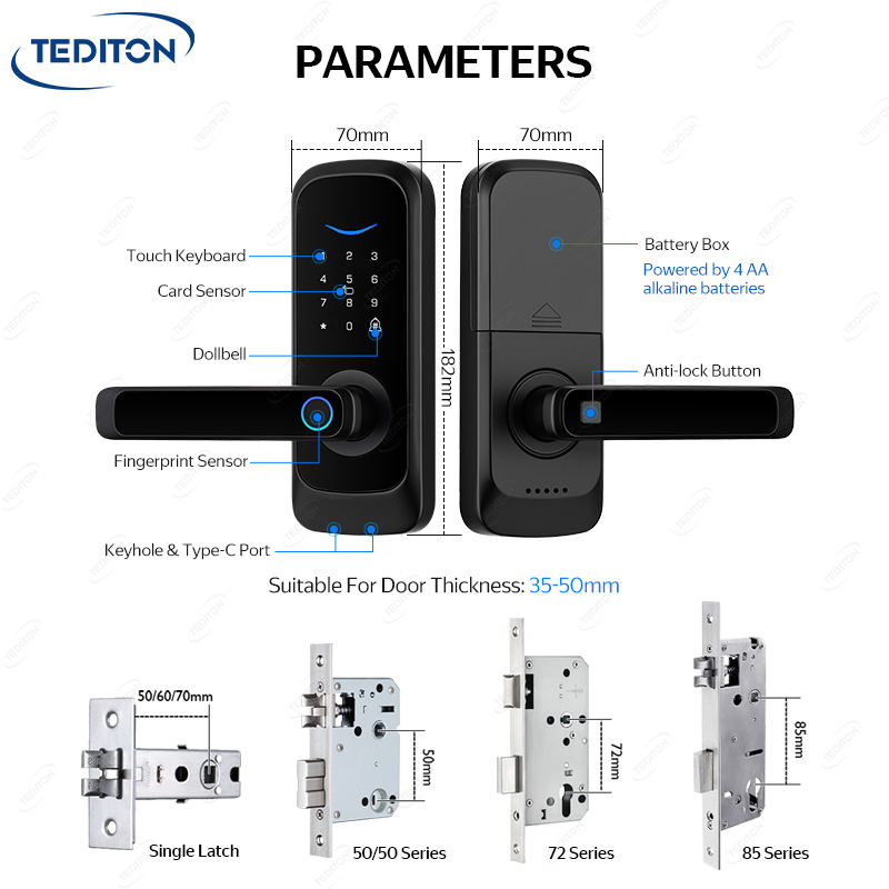 Cerradura Inteligente para Puerta de Dormitorio con Huella Digital y WiFi Tuya, Sin Llave, de Tediton Manufacture