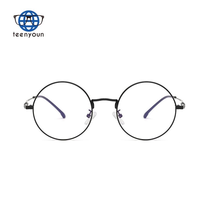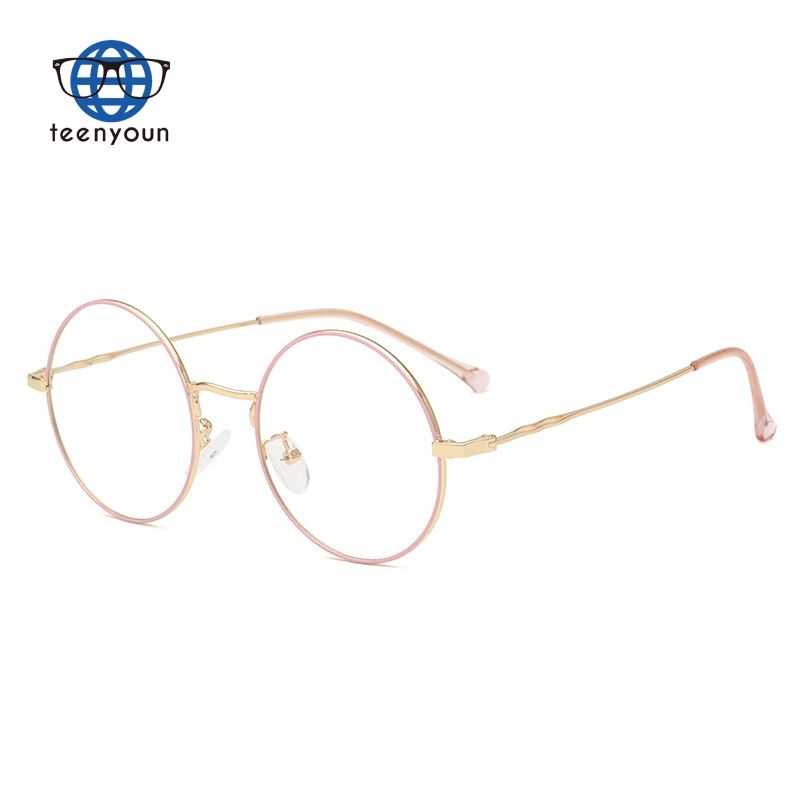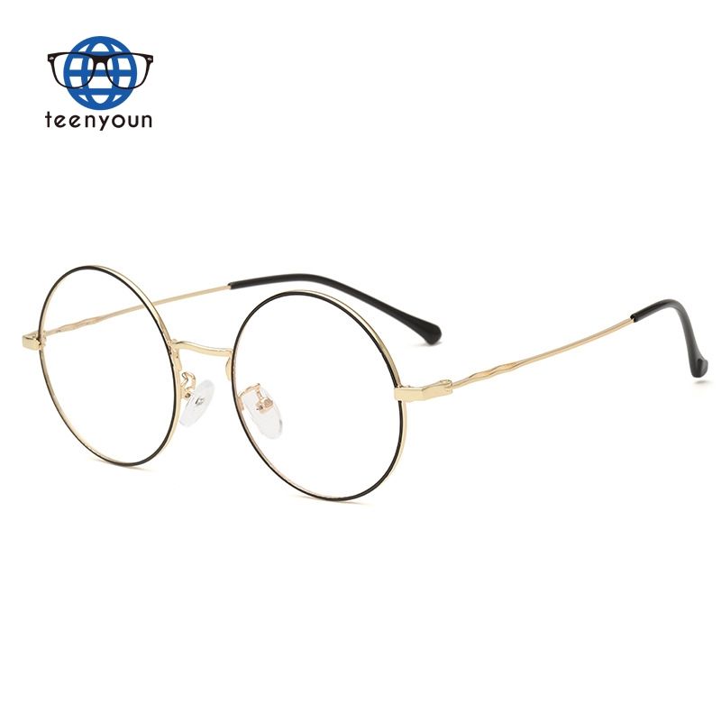 Montura redonda de metal de dos colores montura de gafas de visión cercana versión coreana de hombres y mujeres estudiantes sin gafas planas de grado