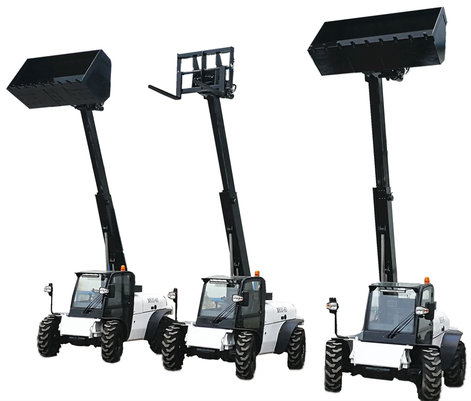 Manipulador telescópico con varios accesorios Cubo 4 en 1/plataforma aérea/Cubo mezclador de Hormigón/barrena/Aplicar varios tipos de trabajo