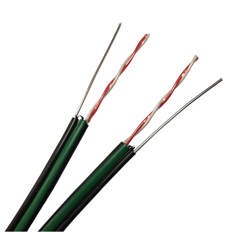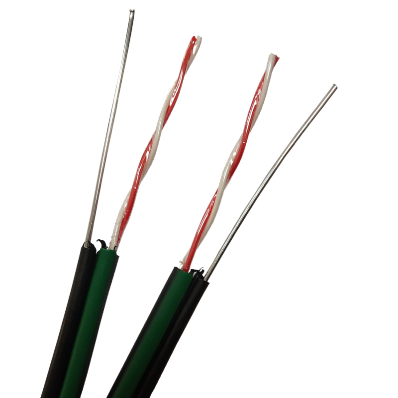 Cable de teléfono de 2 núcleos con tira de Cable de caída de mensajero 0,5*2 Cable de caída para exteriores con tira verde para telecomunicaciones