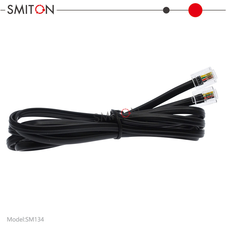 Cable de teléfono RJ11 6P4C Conector modular recto Cable plano Cable Color negro blanco gris con cabeza de cristal interior 1m 2m 3M 5M