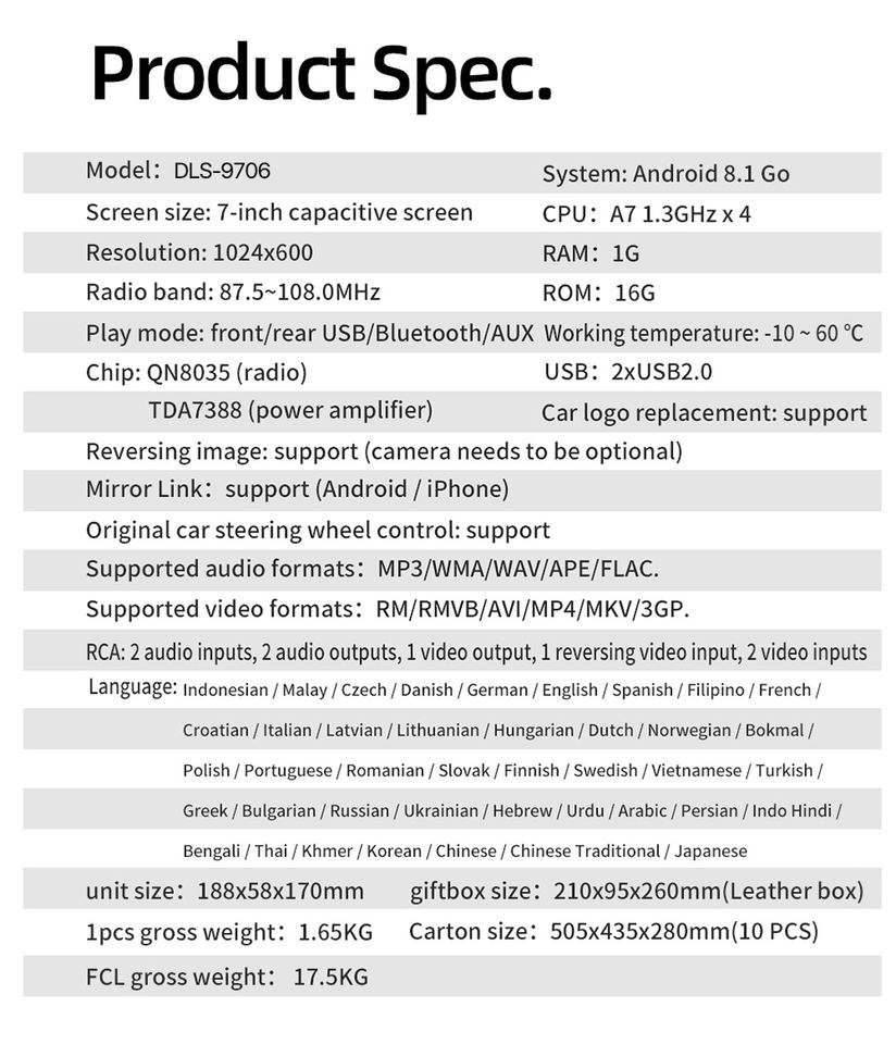 Características:Radio de coche Android