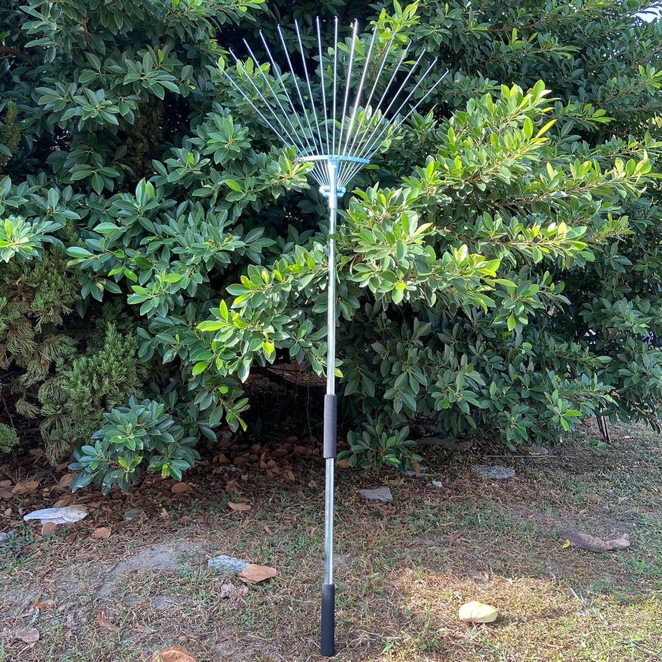 Search 1:Leaf rake telescopic rake flexible extendable wand iron tines quality