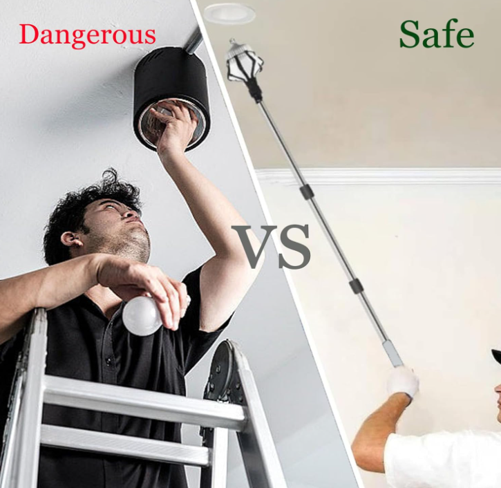 Cambiador telescópico de bombillas para techos altos, extractor de bombillas rotas con cesta y ventosa, para interiores y exteriores
