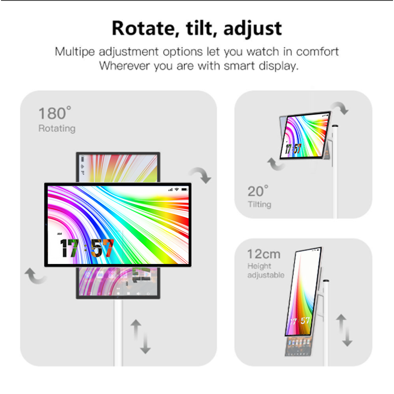 Televisión 24 pulgadas Smart Table TV Recargable 10000mAh Cámara incorporada de 13MP Fundición inalámbrica sobre ruedas Pantalla táctil ajustable