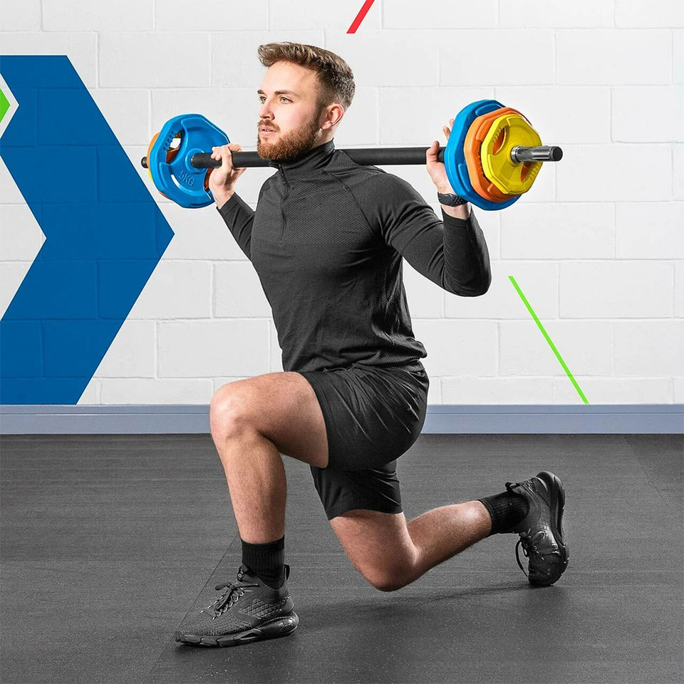 Juego de Pesas de Goma de Alta Calidad con Logotipo Personalizado Tellus, 20 kg, 30 kg, Combo de Barra de Pesas y Mancuernas, Barra de Acero, 6 Discos, Uso Comercial