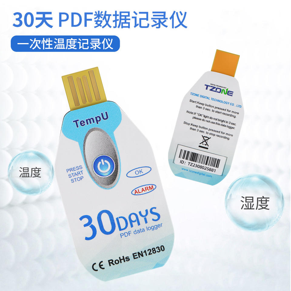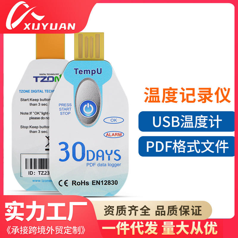 Registrador de Datos de Temperatura TempU, 30 Días, Interfaz USB PDF, para Monitoreo de Cadenas de Frío, Refrigeradores Farmacéuticos y Almacenes