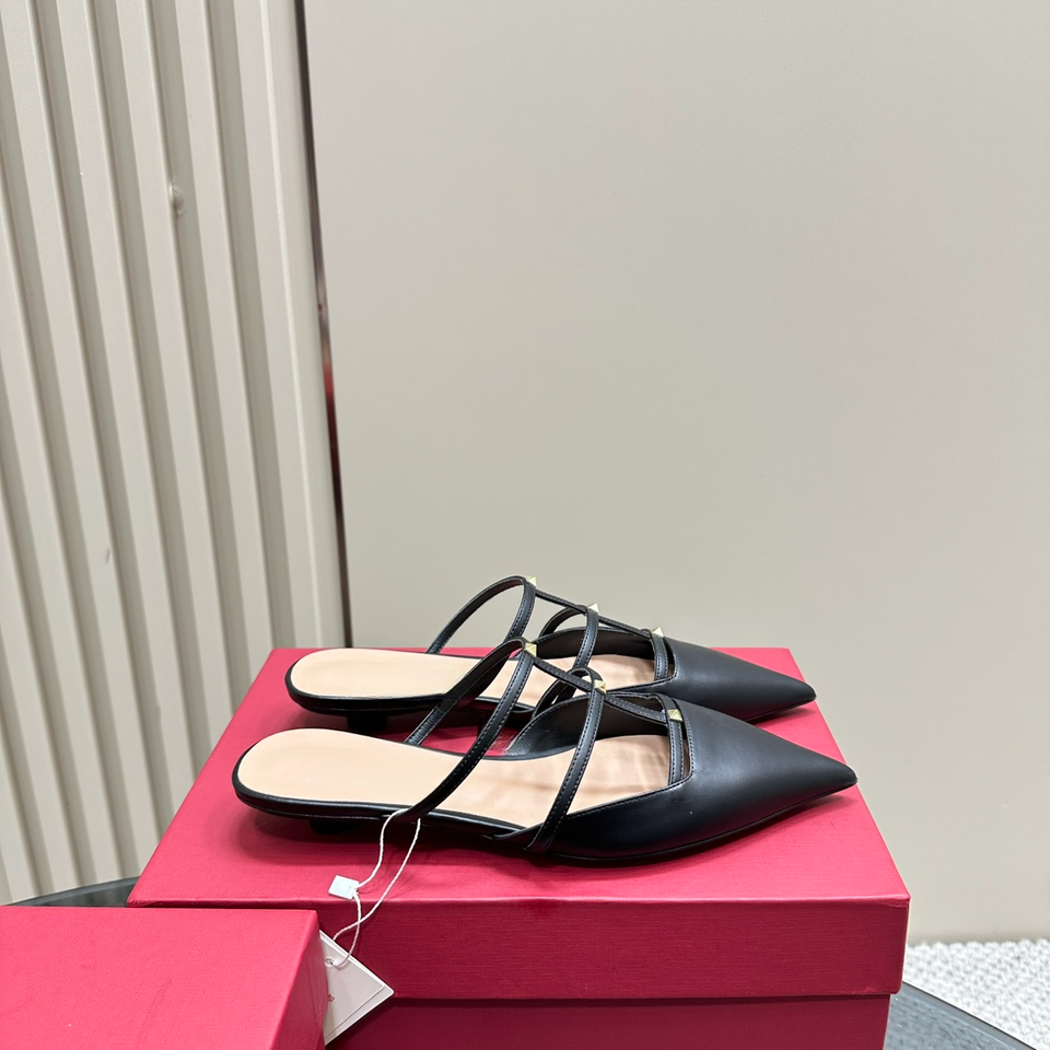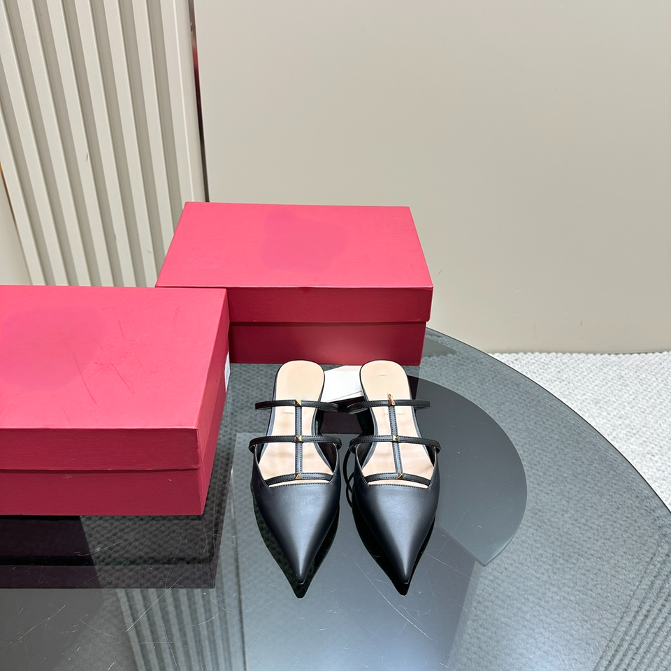 Mules de Piel Negra con Punta en Pico, Doble Correa y Detalles Dorados para Mujer