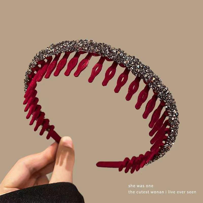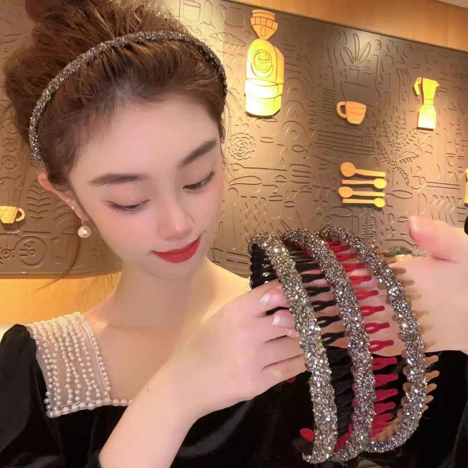Diadema de terciopelo con diamantes de imitación y diseño de dientes, de alta calidad, antideslizante, para lavado facial, con gemas brillantes, diademas avanzadas