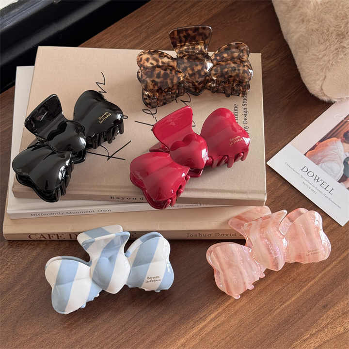 Pinza de pelo de acetato con diseño de lazo tridimensional, a rayas, estilo sencillo, para cola de caballo, para uso diario femenino, personalizable