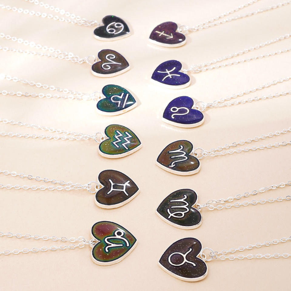 Collar con Colgante que Cambia de Color con Sensor de Temperatura, 12 Constelaciones del Zodiaco, Astrología, Horóscopo, con Tarjeta de Mensaje para Cumpleaños
