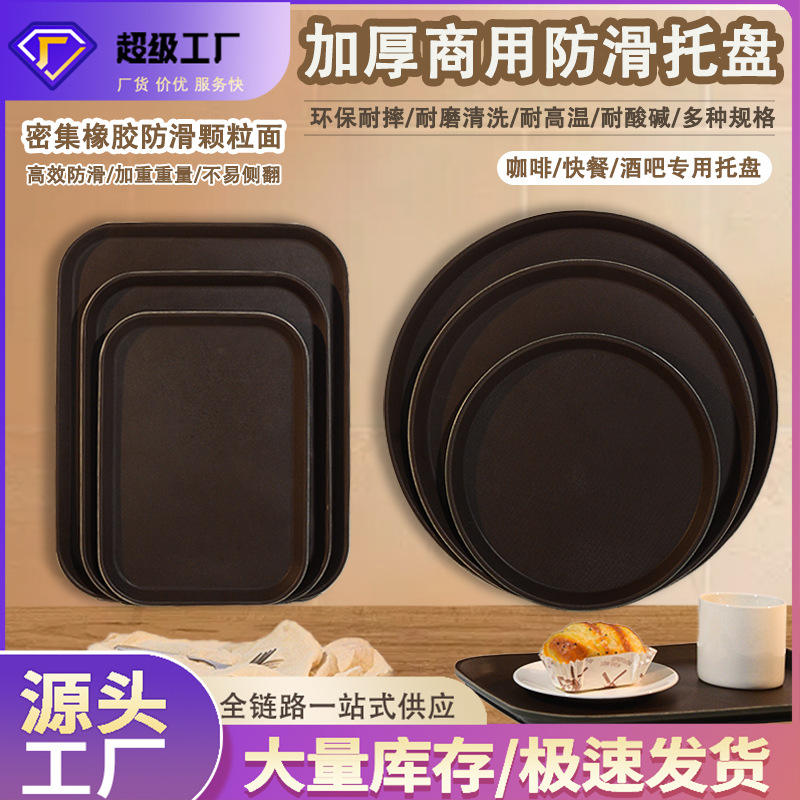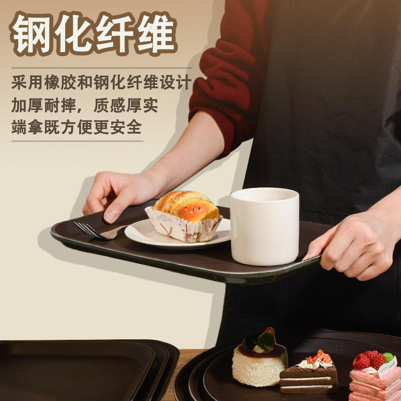 Bandeja de Servicio de Fibra Templada, Rectangular y Redonda, Antideslizante, para Hoteles, Cafeterías, Restaurantes, Uso Comercial