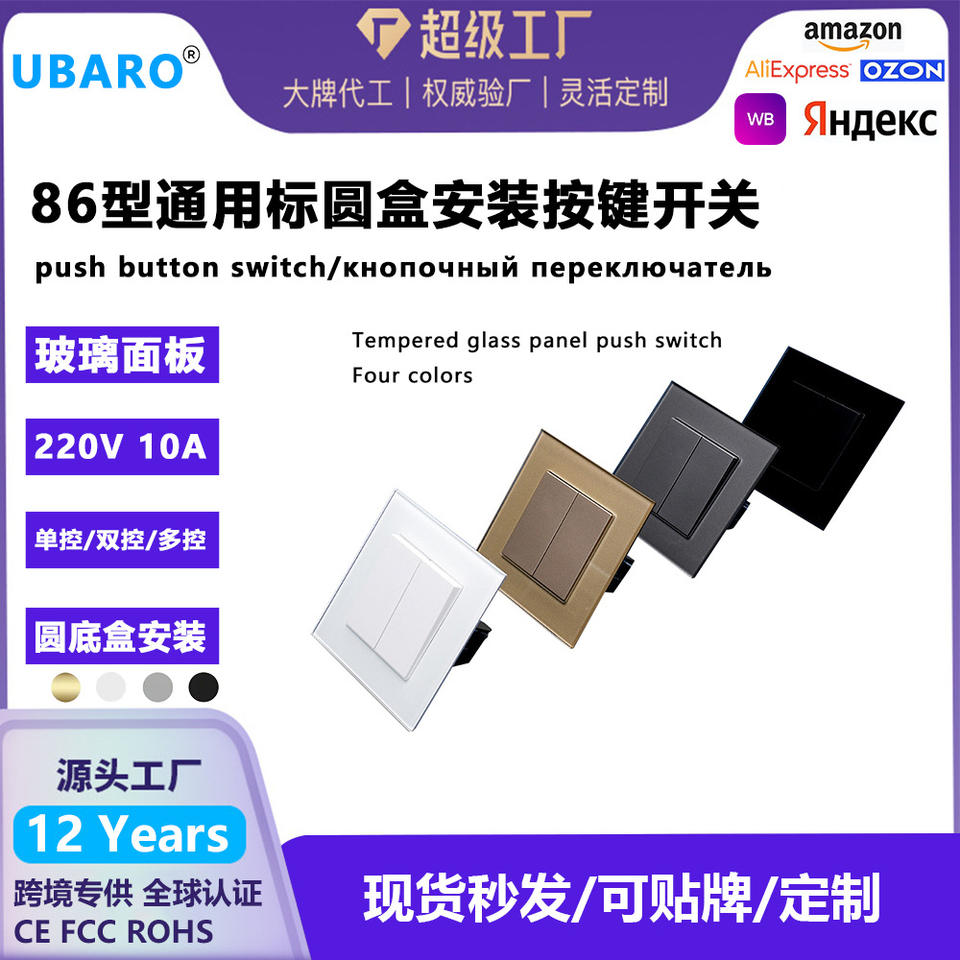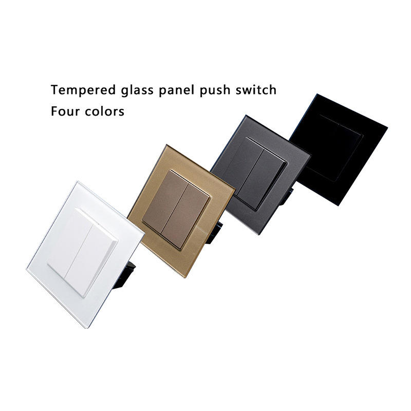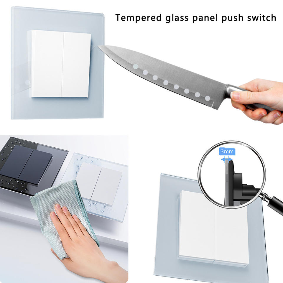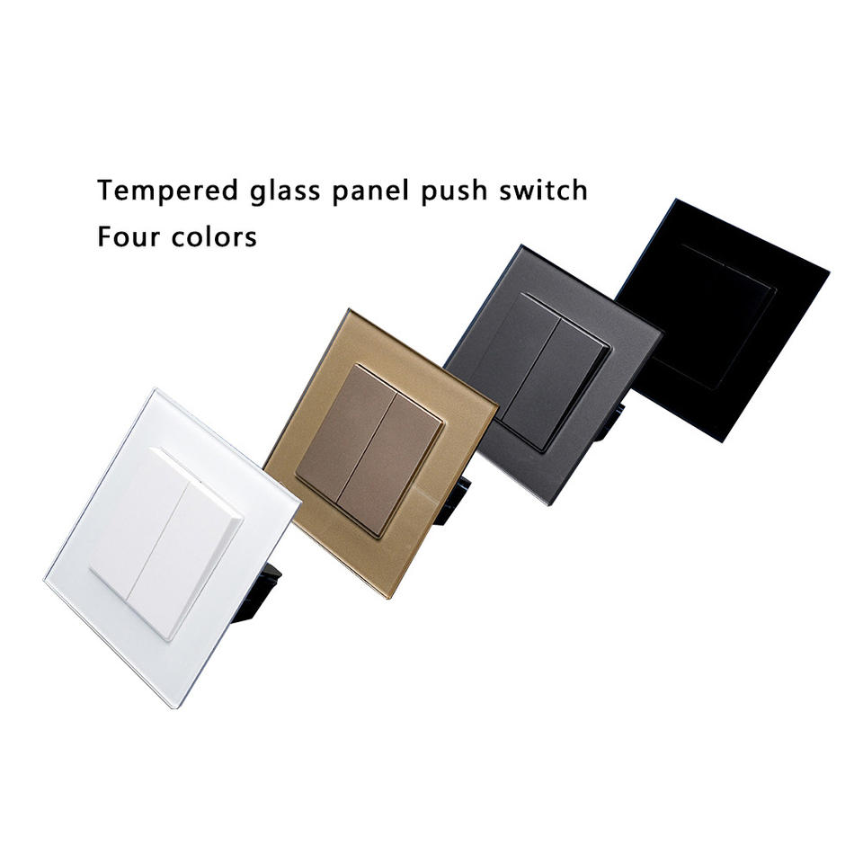 Interruptor de Pared con Botón de Presión y Panel de Vidrio Templado, Serie 86 E, 10A, 220-250V, Sin Iluminación, Ignífugo, IP40
