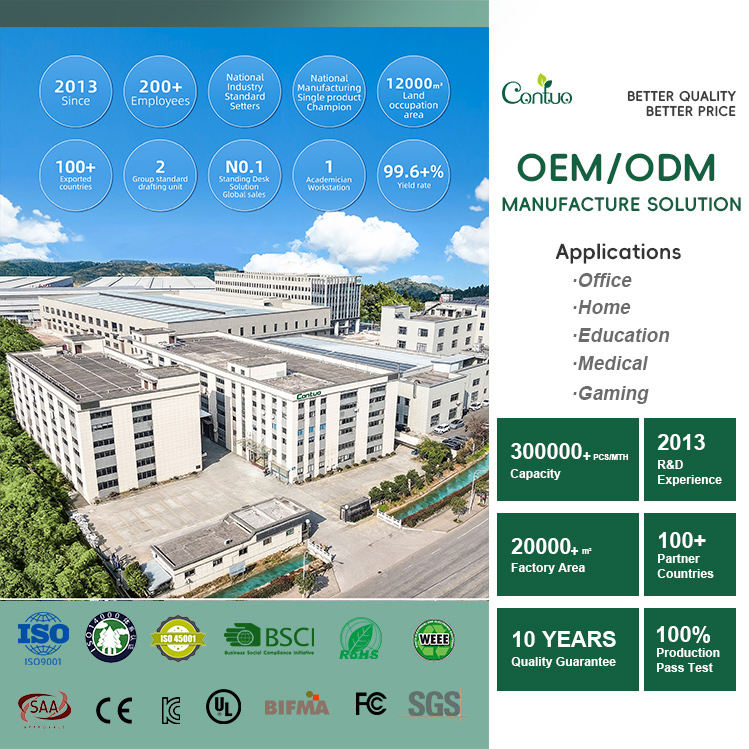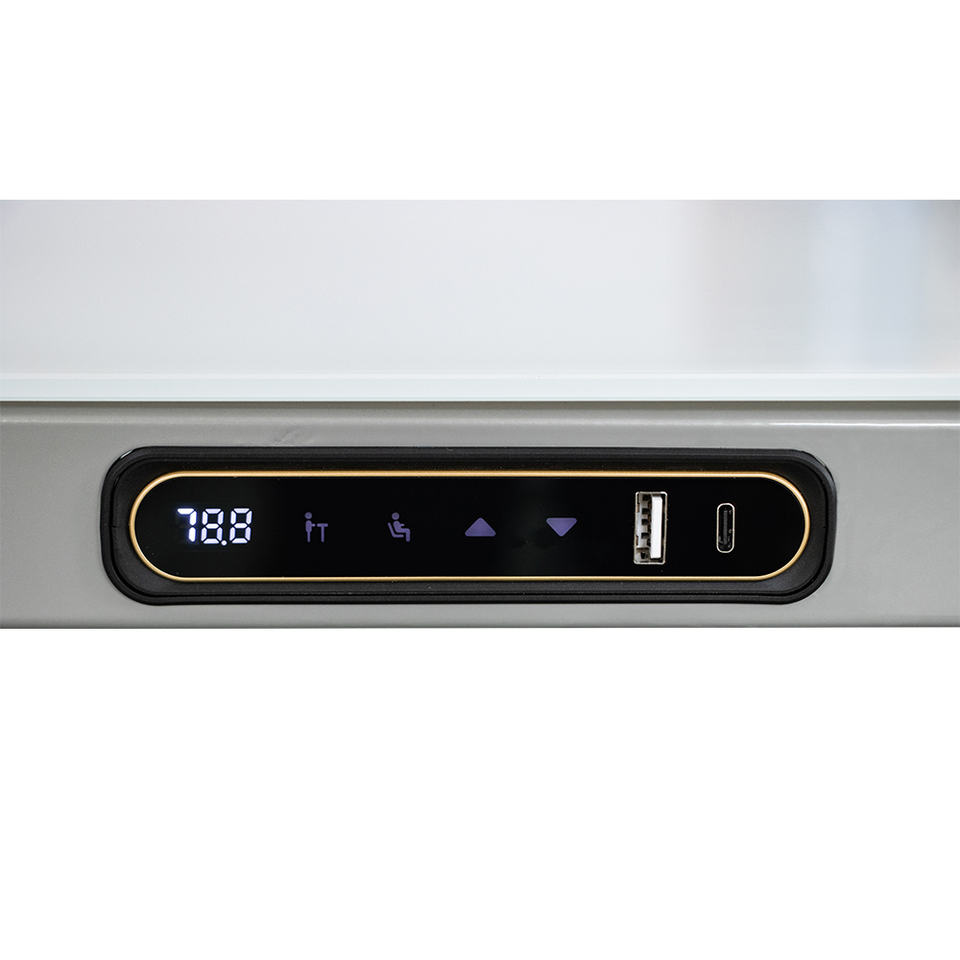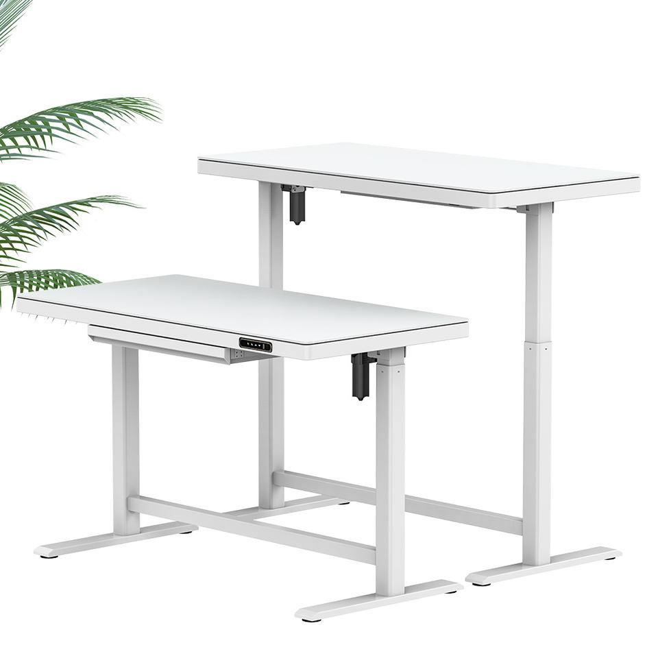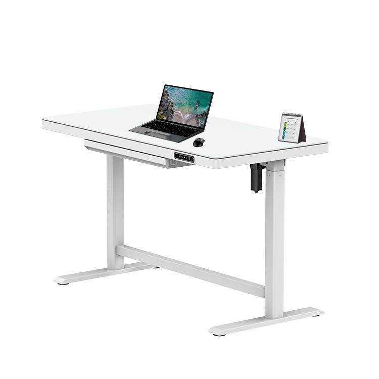 Mesas ajustables de altura eléctrica superior de vidrio templado PC Sit to Stand Escritorio de pie Escritorio con cajones