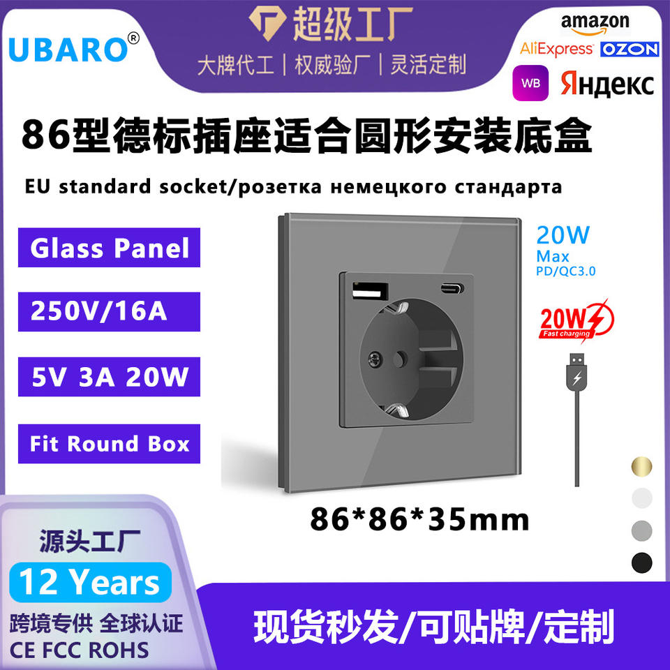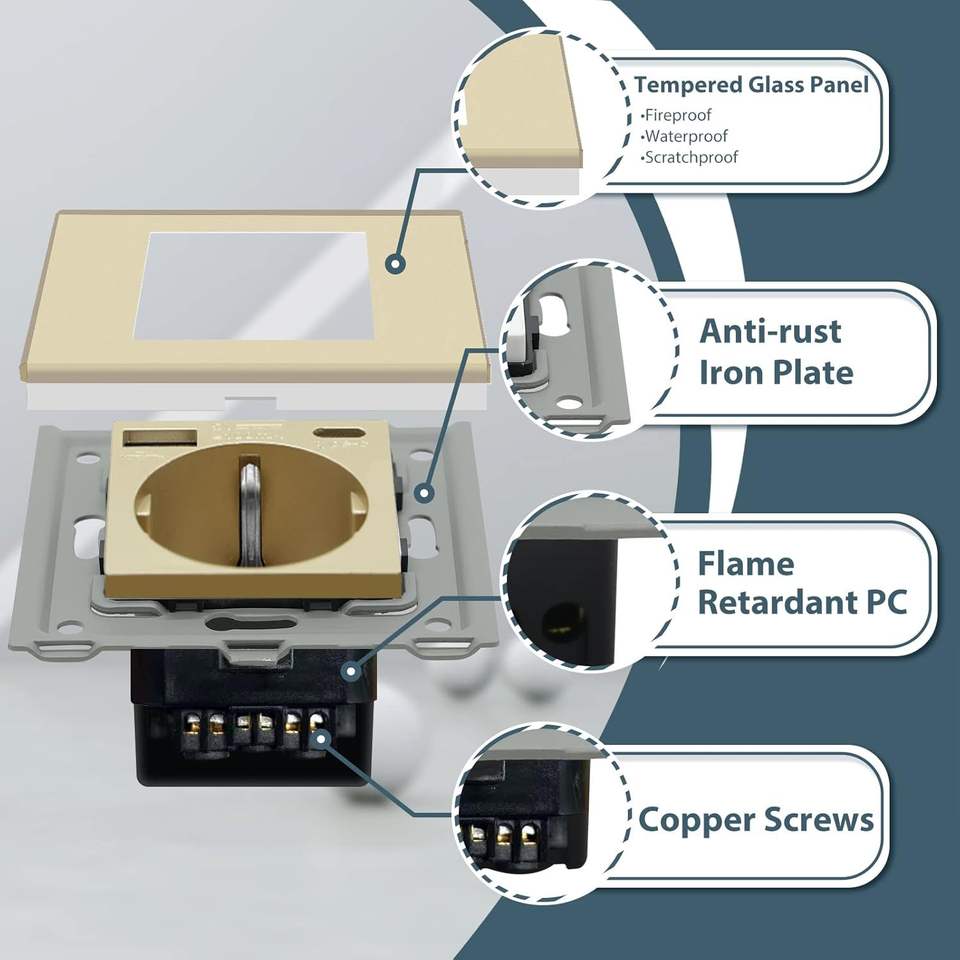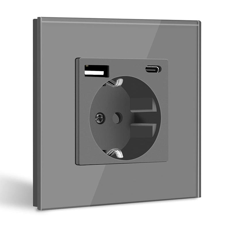 Panel de Enchufe de Pared de Vidrio Templado 16A AC220V con Carga Rápida USB Tipo C para Uso Doméstico