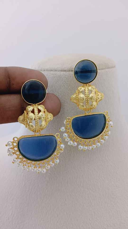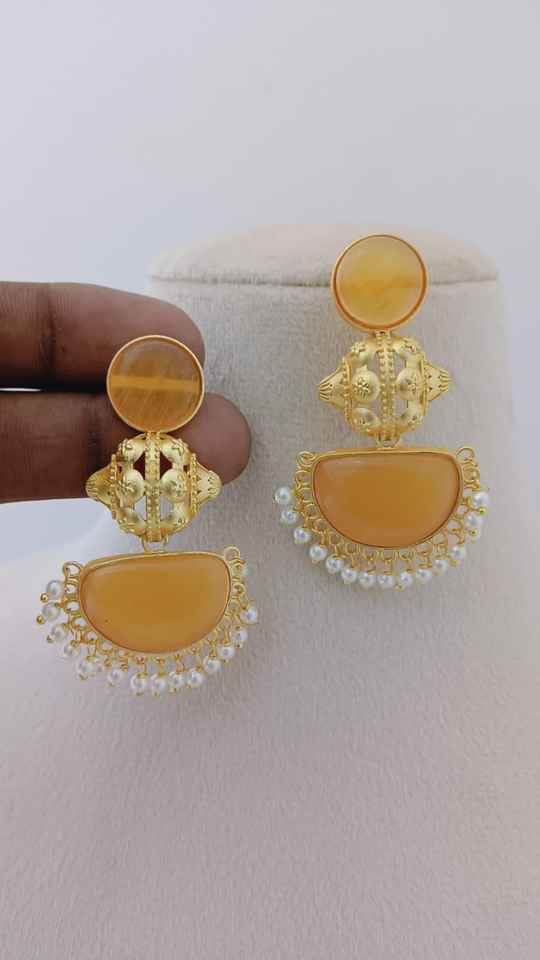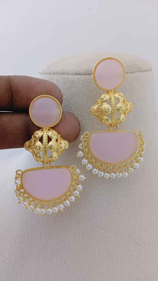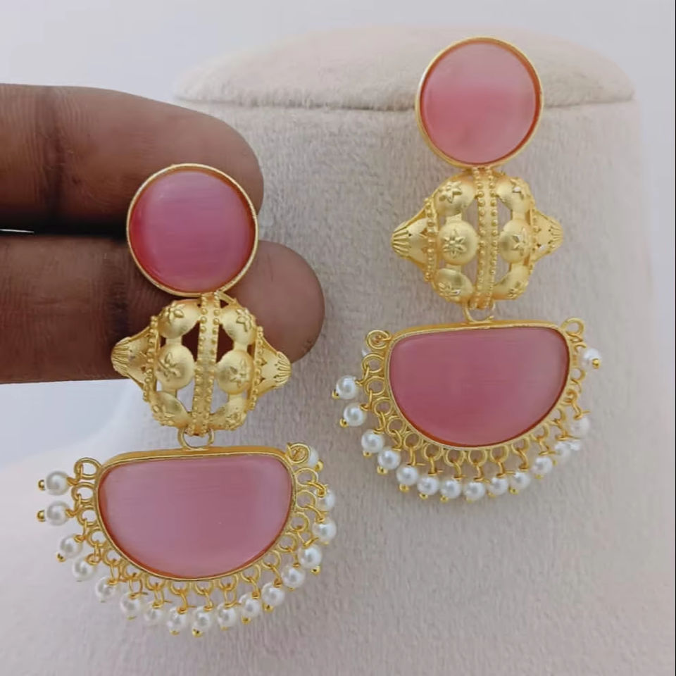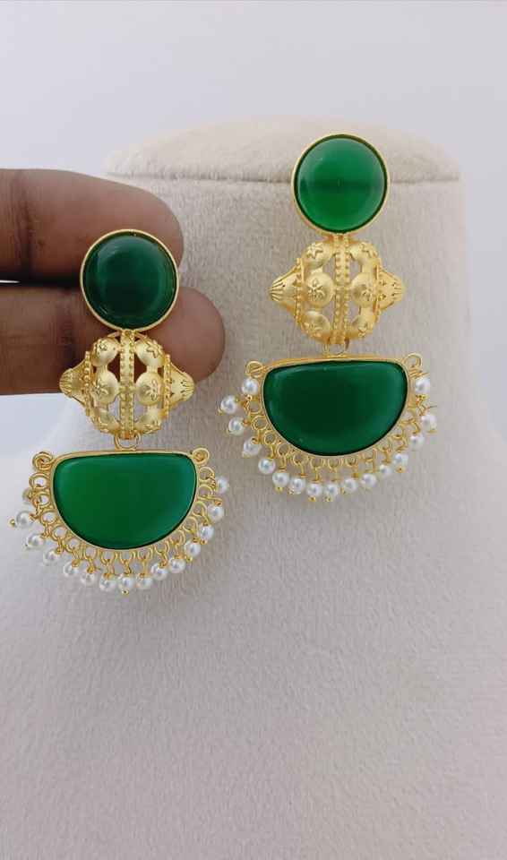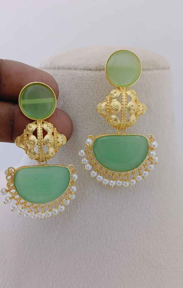 Temple Crescent Bulk Diseño personalizable Acabado de piedra semicircular Ornamentación única Juego de pendientes colgantes de moda Hecho de latón