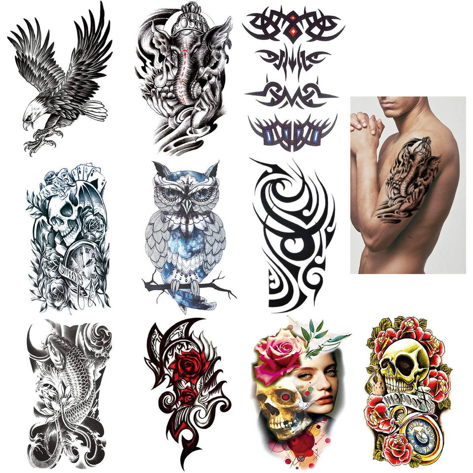 Tatuajes Temporales para hombres y mujeres, pegatina de cuerpo falso para brazo, tatuaje para pecho y hombro