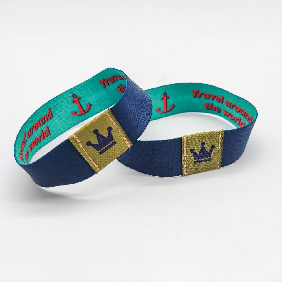 Pulsera bordada tejida elástica de fábrica Ten-cent Pulsera de tela de poliéster elástica con chip NFC/RFID para eventos