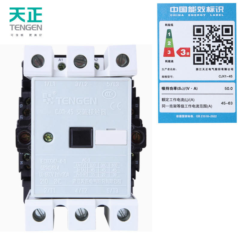 Contactor de CA Tengen 22A trifásico para montaje en carril DIN, serie CJX1