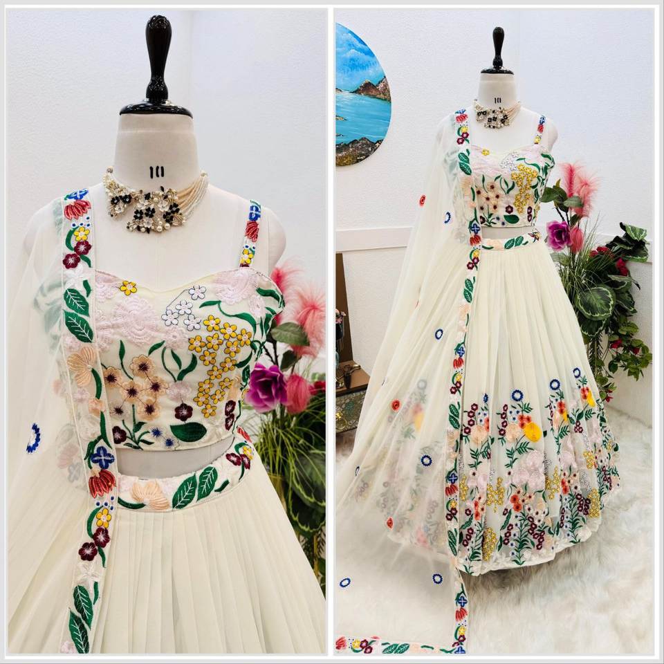 Tennecy último diseñador Faux Georgette bordado secuencia trabajo Lehenga Choli por mujer
