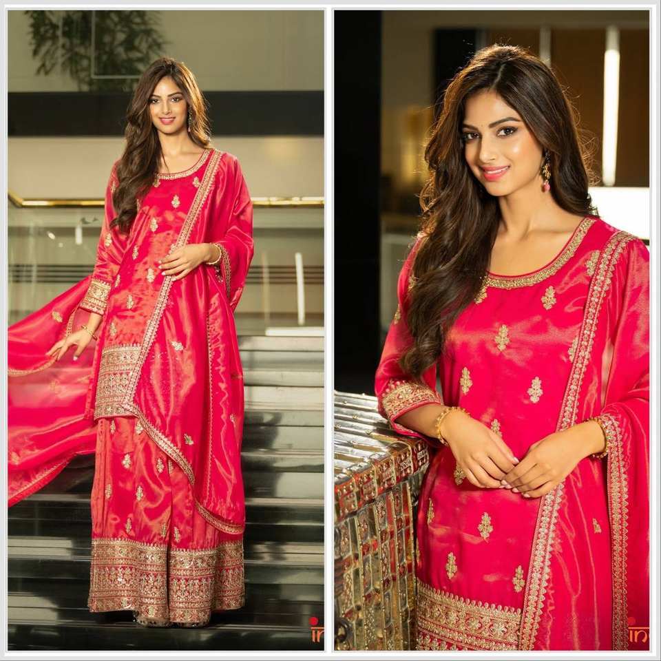 Tennecy nuevo diseñador indio y paquistaní ropa de fiesta Top Pallazo y Dupatta conjunto