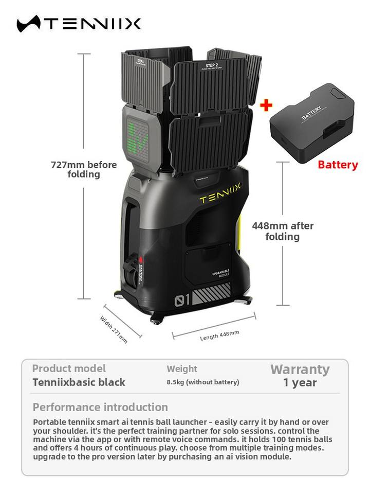 Máquina Lanzapelotas de Tenis Automática Inteligente Portátil Tenniix Basic para Entrenamiento Individual en Tenis y Baloncesto