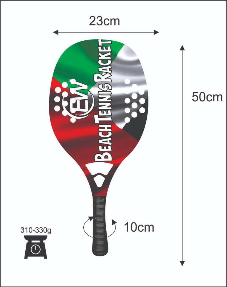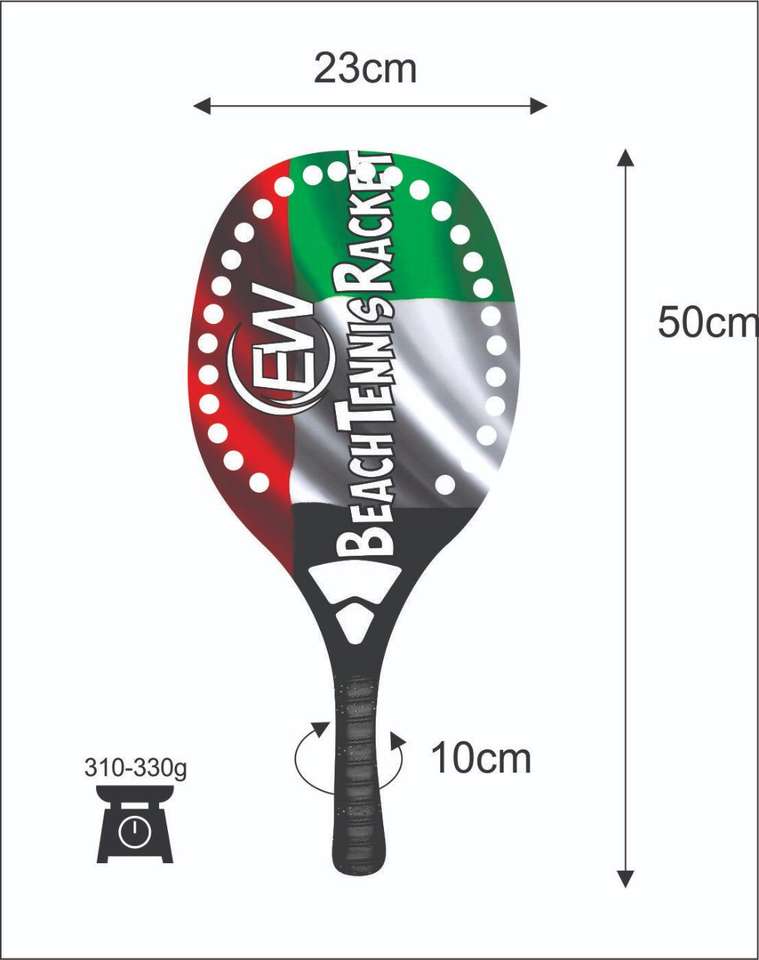 Raquetas de Tenis Playa, Cara de 20 mm, Peso 310-330 g, Longitud 50 cm, Empuñadura de Fibra de Carbono