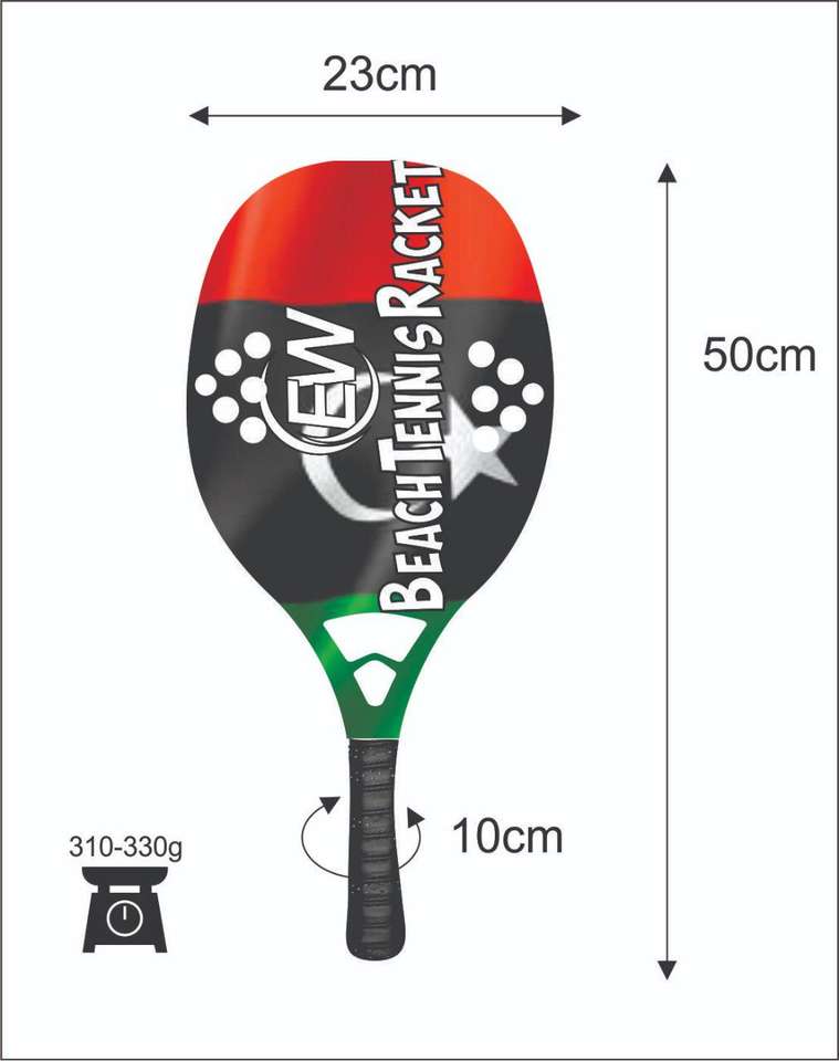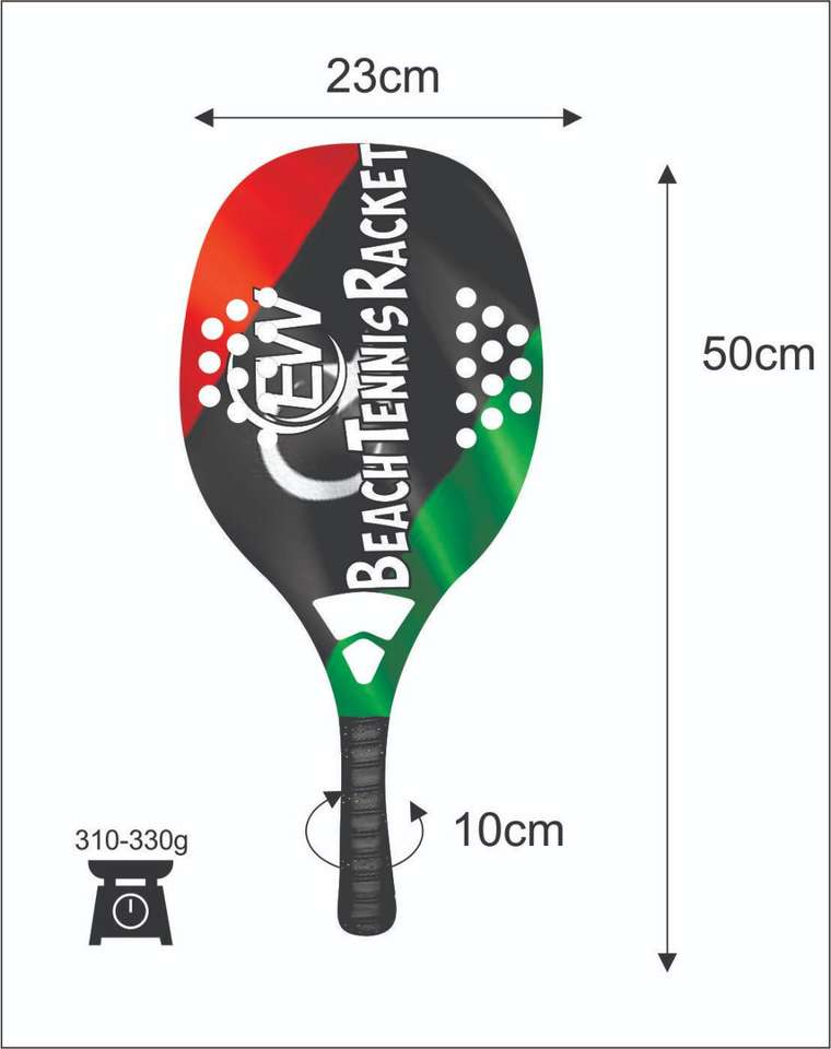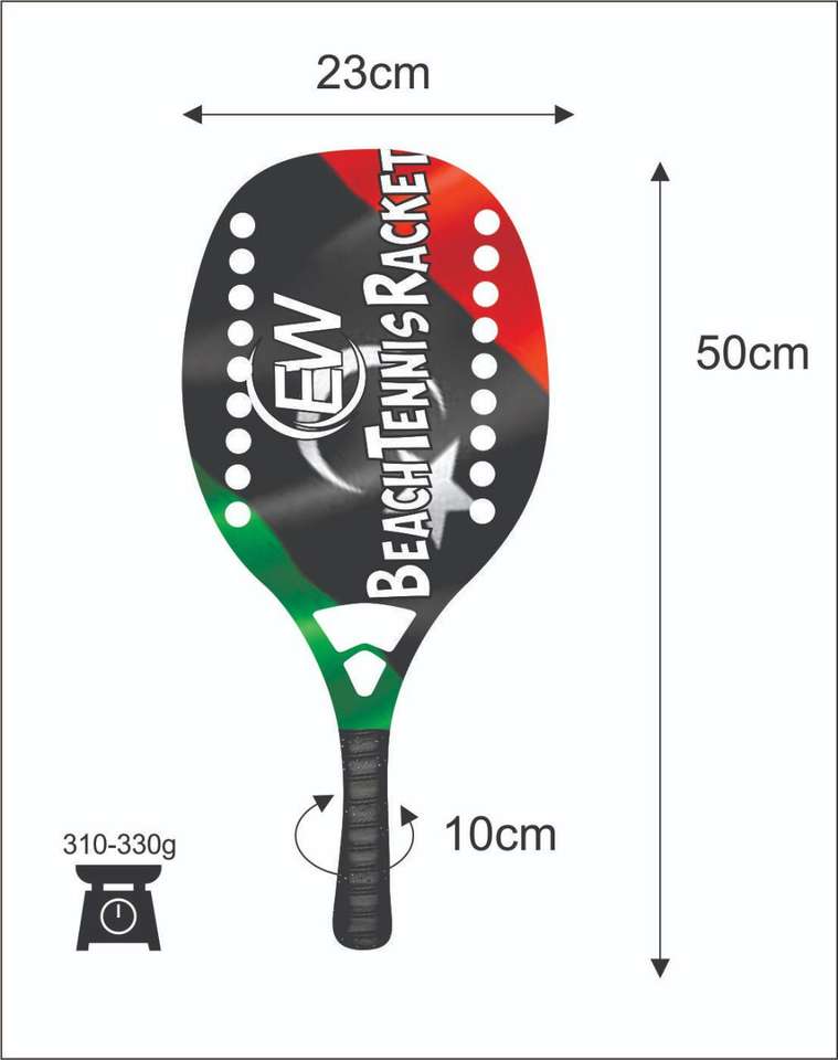 Raquetas de Tenis Playa, Cara de 20 mm, Peso 310-330 g, Longitud 50 cm, Empuñadura de Fibra de Carbono, Red de Fibra de Vidrio y Carbono