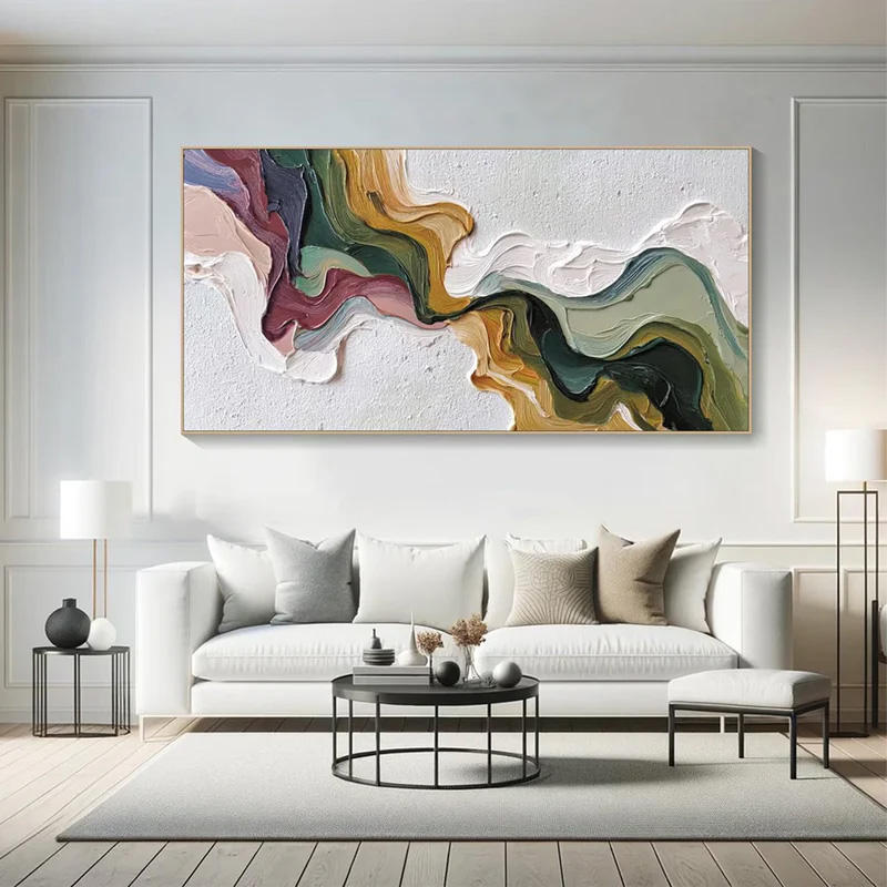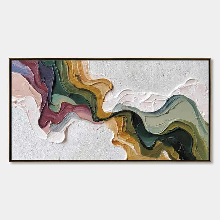 Pintura al Óleo Panorámica Texturizada Terra Flow en Tonos Tierra, Decoración Arquitectónica, Obra de Arte para Decoración del Hogar, Arte Mural Enmarcado